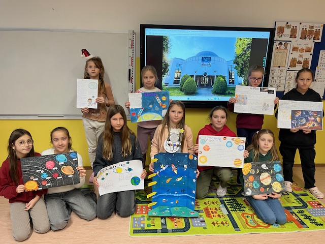 Aj prírodoveda môže byť hravá a zaujímavá. Vytvorili sme si vlastné projekty o vesmíre. Niektorí robili planéty,slnečnú sústavu, iní rakety, hviezdy a súhvezdia. Dali sme si veľa práce s vystrihovaním, maľovaním, kreslením a hľadaním zaujímavostí.Následne sme práce prezentovali pred spolužiakmi. Bola to skvelá príležitosť rozvíjať vedomosti, sebavedomie aj prezentačné schopnosti. ( Kusyová)